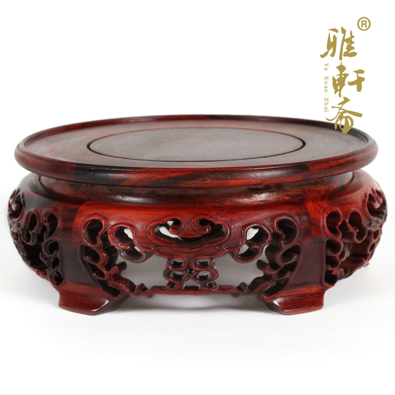 雅轩斋红木雕工艺品红酸枝木花瓶底座2012042802