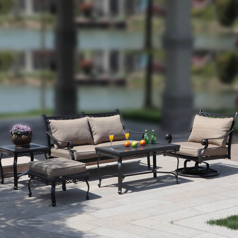紫灿单人沙发椅组装小户型铸铝双人沙发茶几户外美式沙发