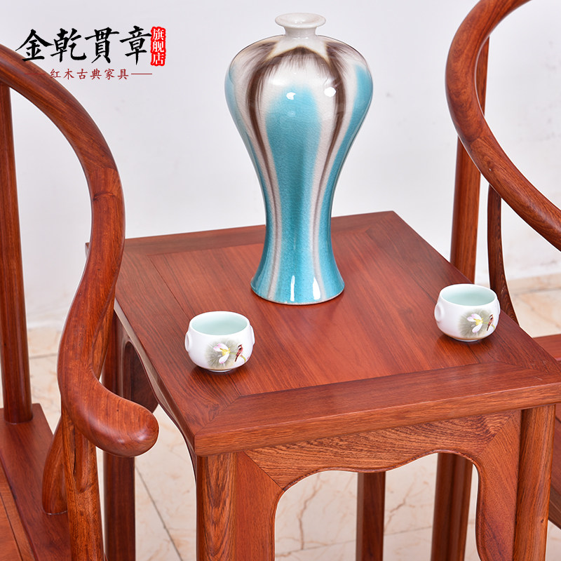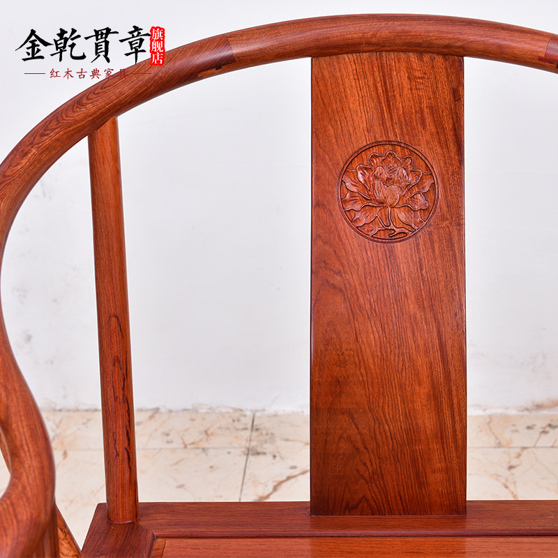 金乾贯章红木家具缅甸花梨木圈椅三件套