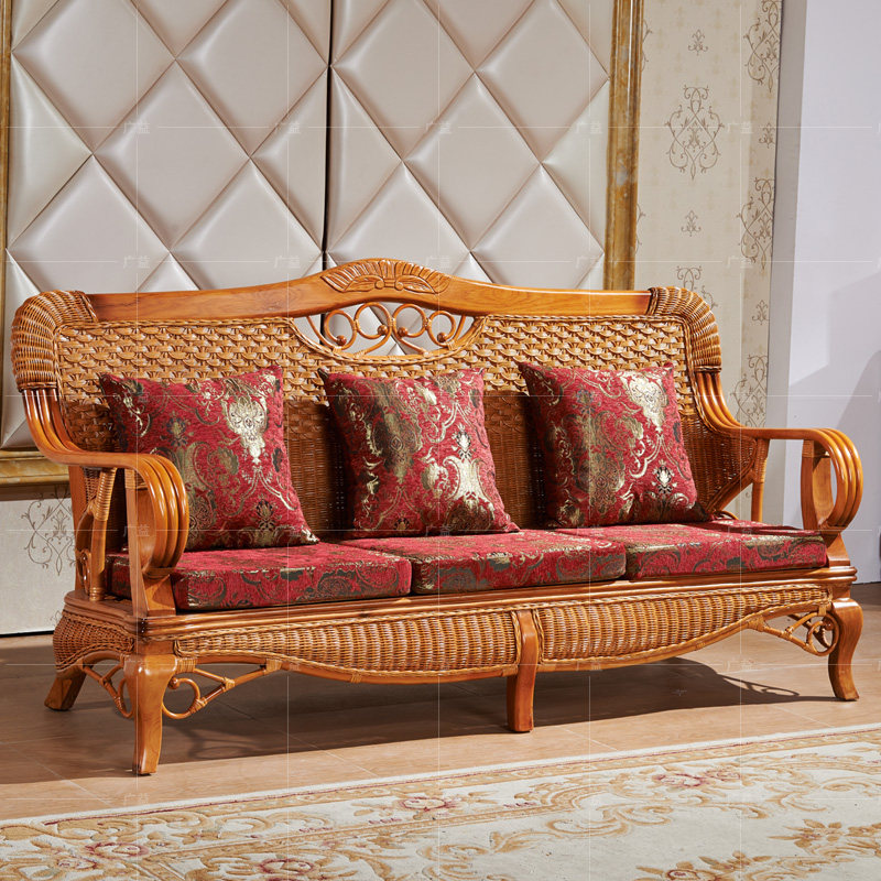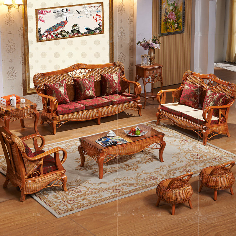 广益天然真藤沙发茶几五件套1007