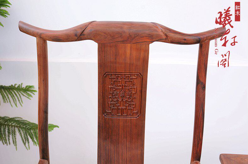 曦轩阁实木宫帽椅三件套老挝大红酸枝-官帽椅