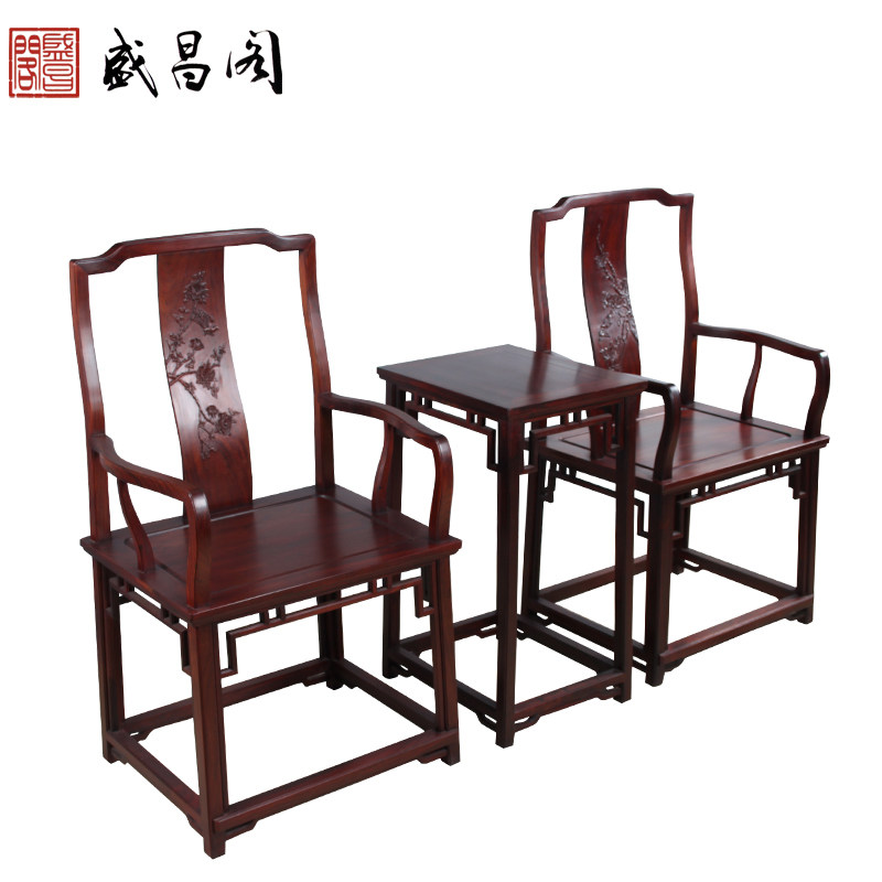 盛昌阁中式仿古大红酸枝围椅三件套A006