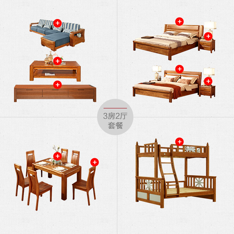 盛唐古韵新中式实木成套家具沙发 HTM3房2厅