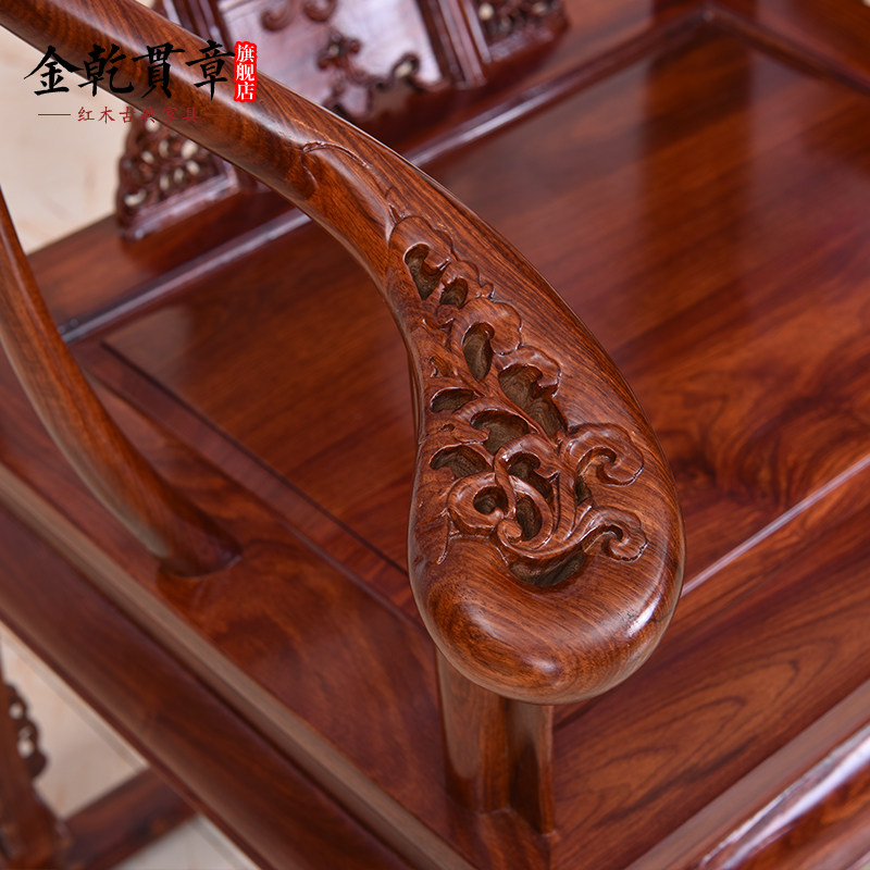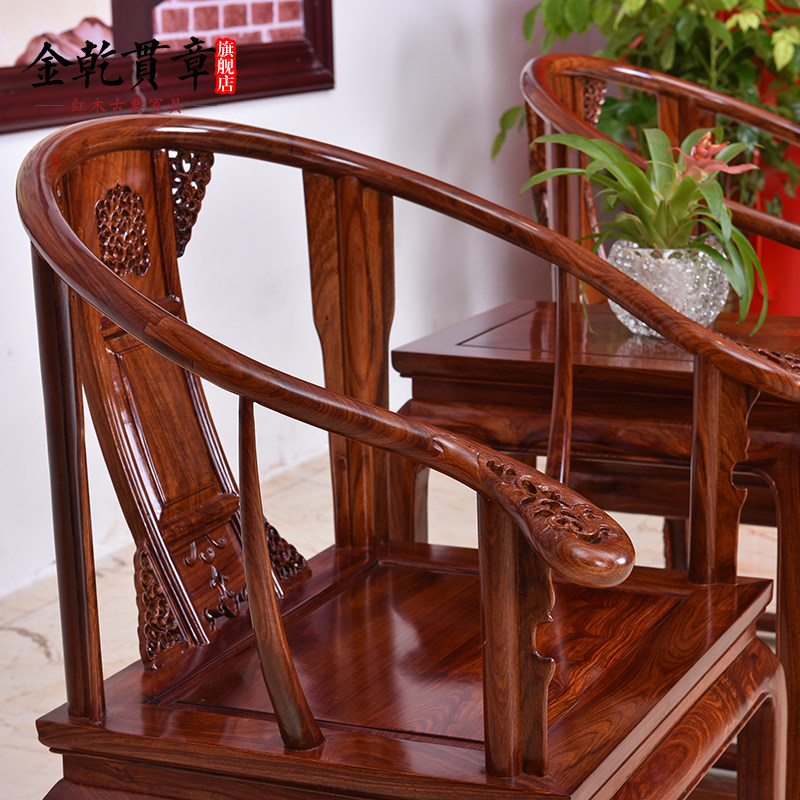 金乾贯章红木家具刺猬紫檀圈椅茶几HLSJT039