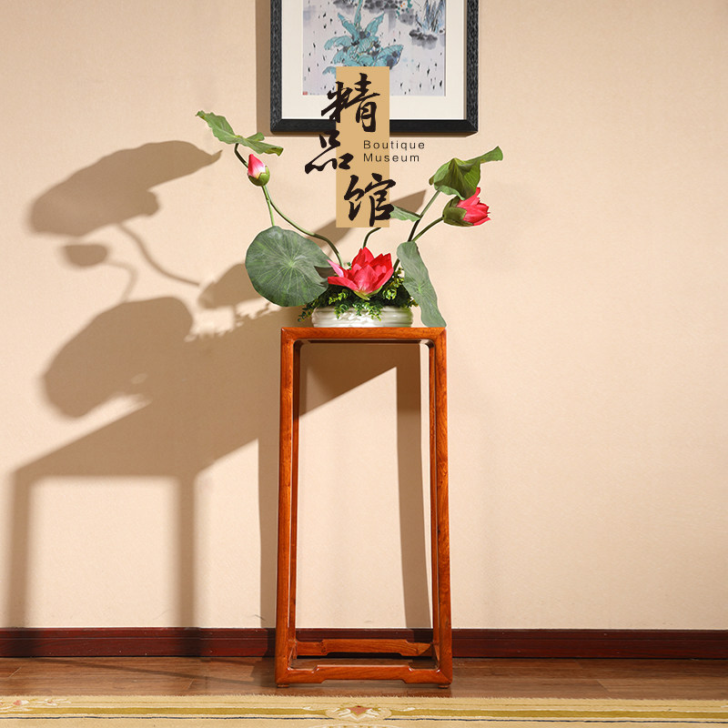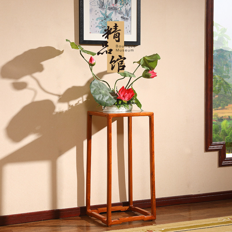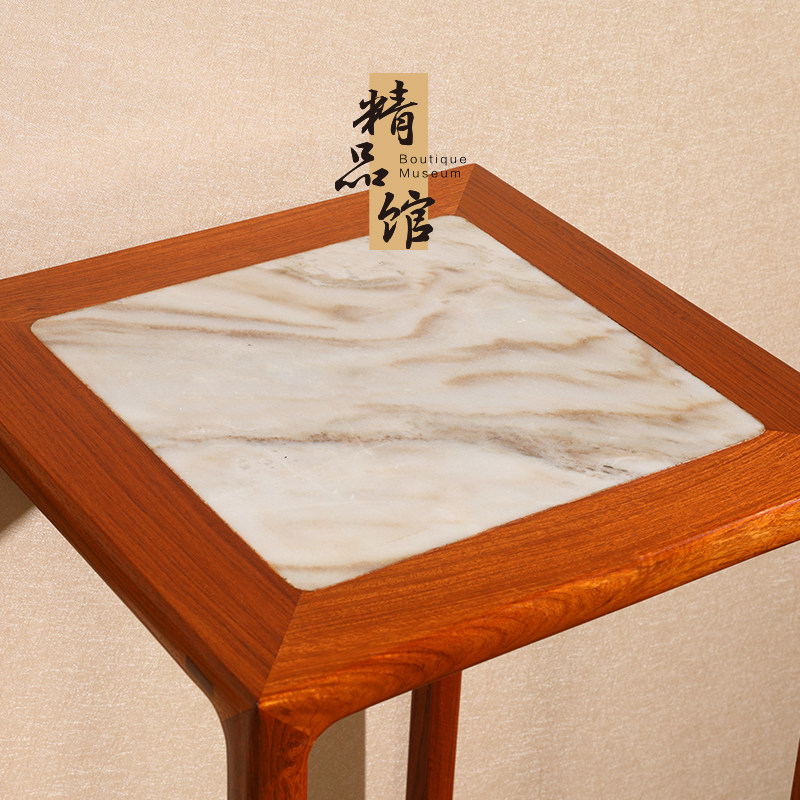 高居明作缅甸花梨木花架镶文石花几