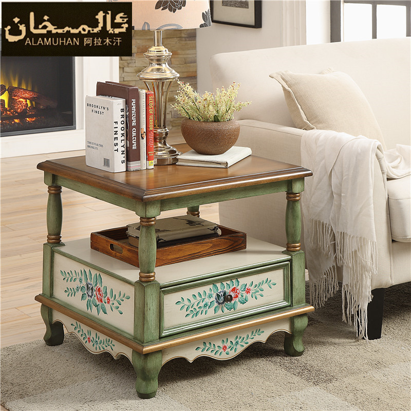 阿拉木汗美式乡村实木方形小角几DHF-2914B