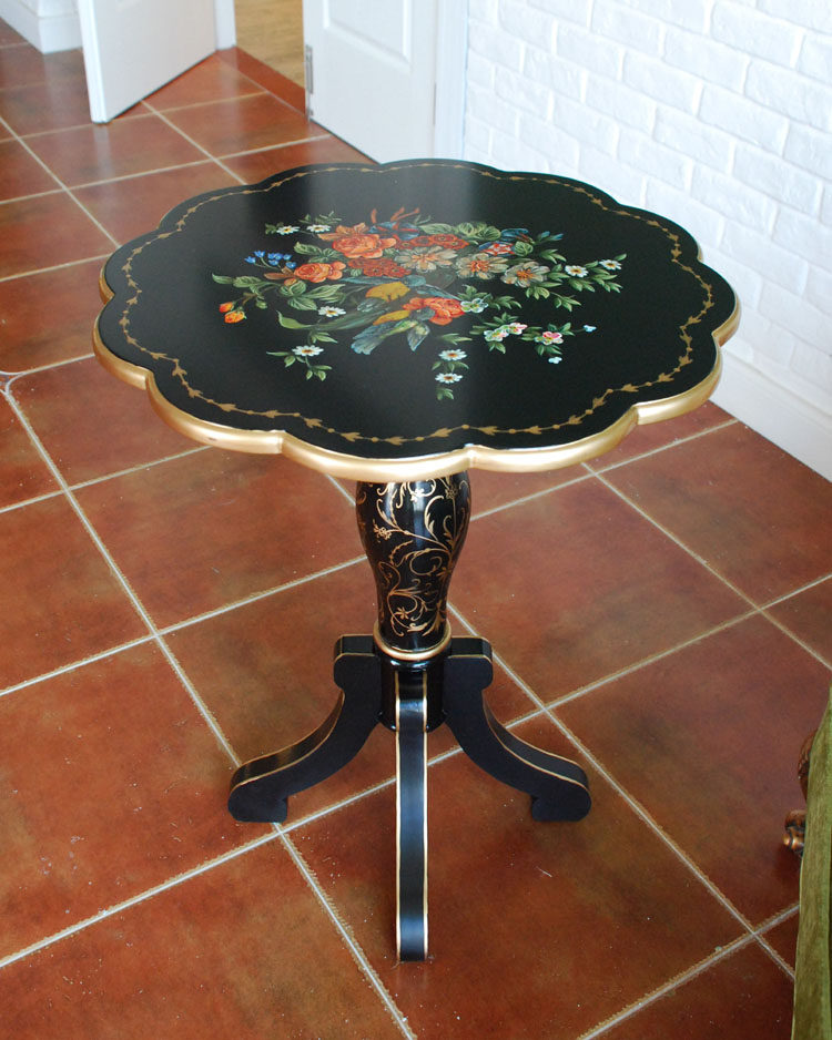 千棵树手绘家具复古华美描金花朵圆桌CHJ119