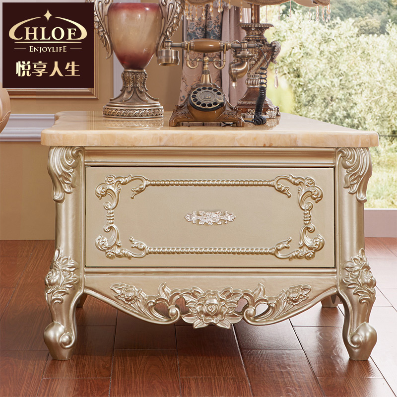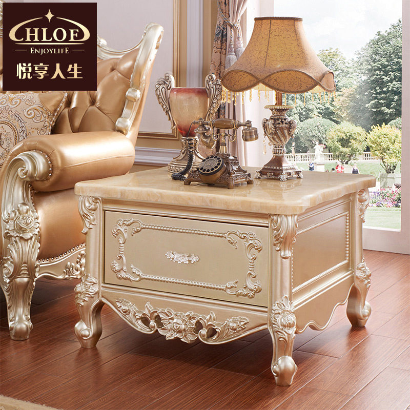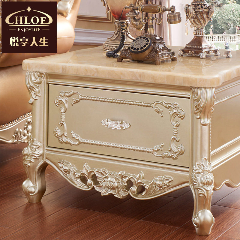 悦享人生欧式天然大理石香槟色茶几香槟色E15角几