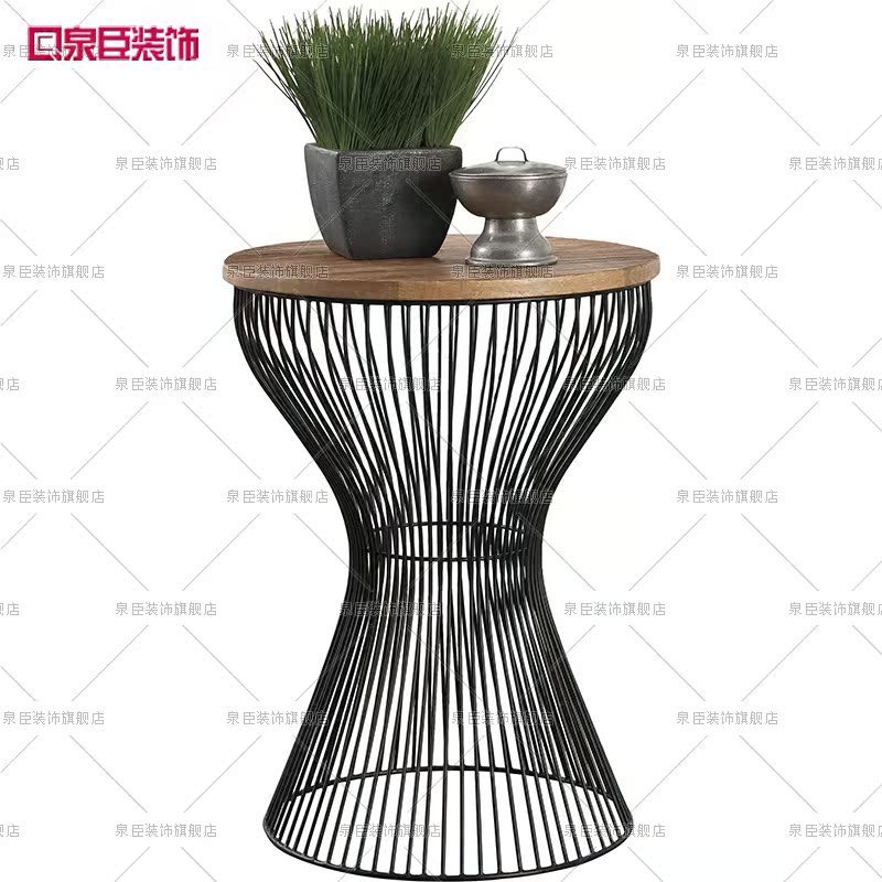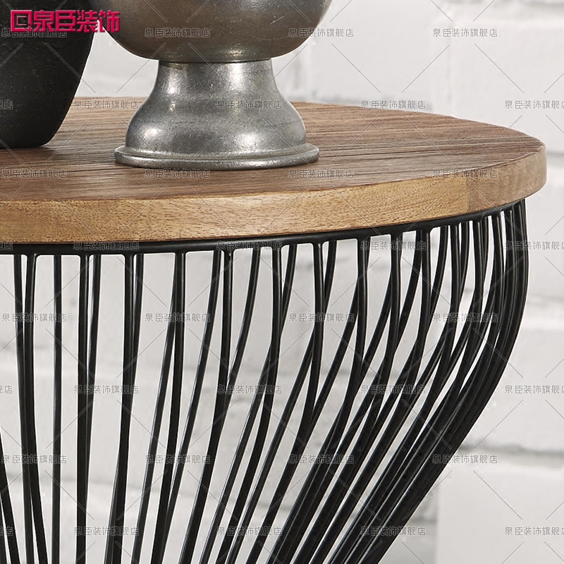 泉臣装饰美式铁艺实木沙发小圆形茶几qczs2322