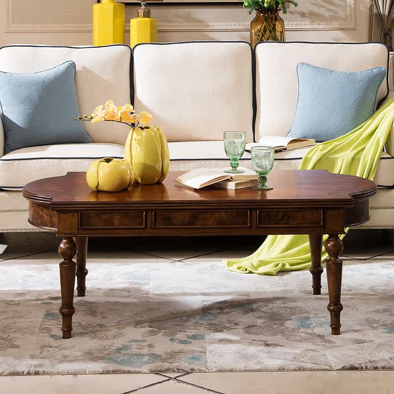 Visney简美北美橡木雕花茶几19143H3