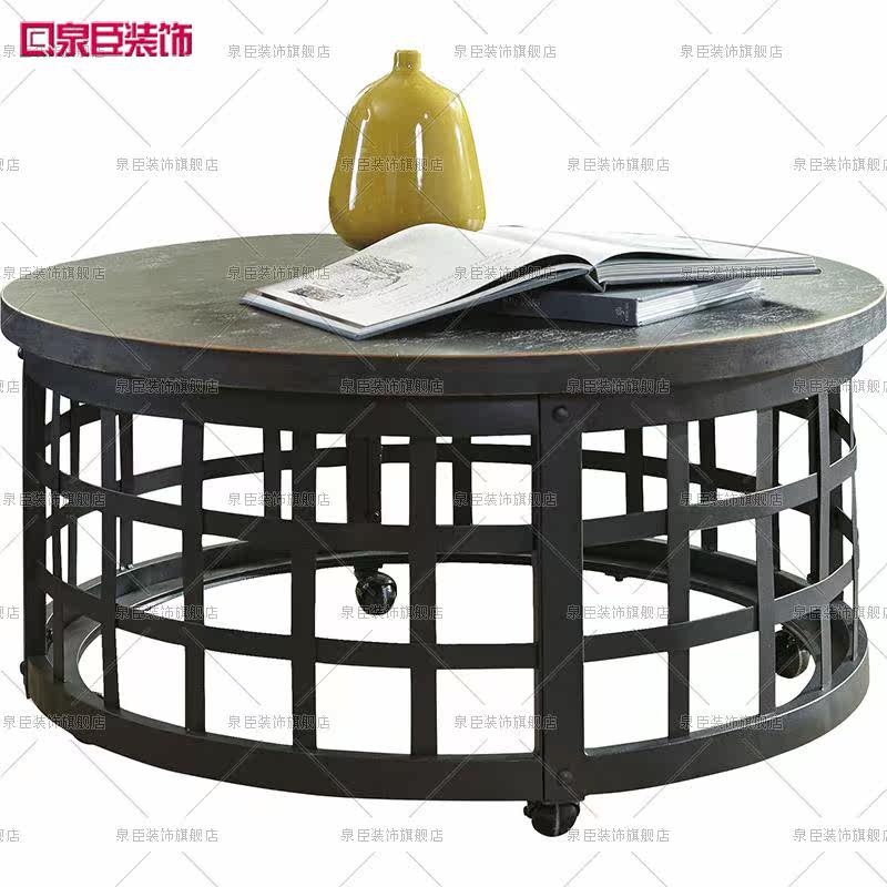 泉臣装饰美式复古铁艺实木茶几