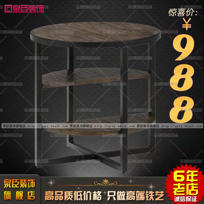 泉臣装饰铁艺圆桌实木茶几qcc07