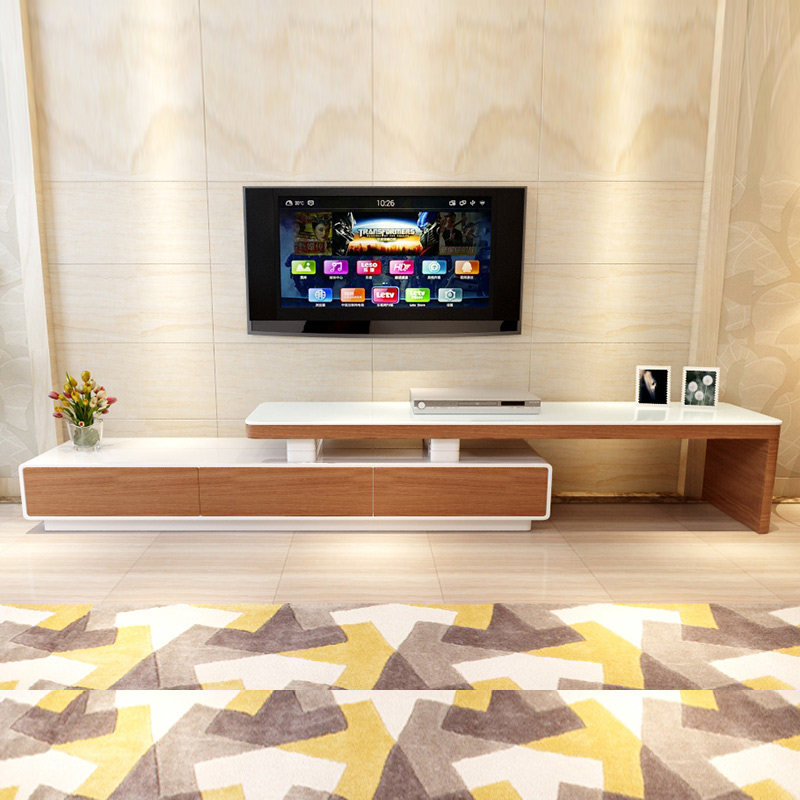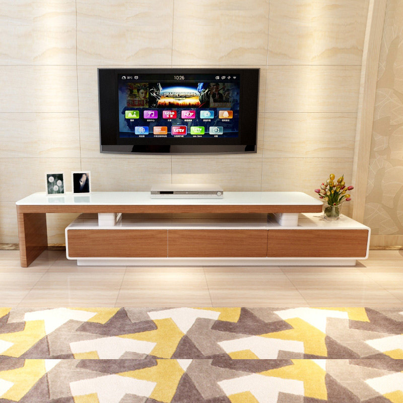 乐私可伸缩贴木皮钢化玻璃储物电视机柜088
