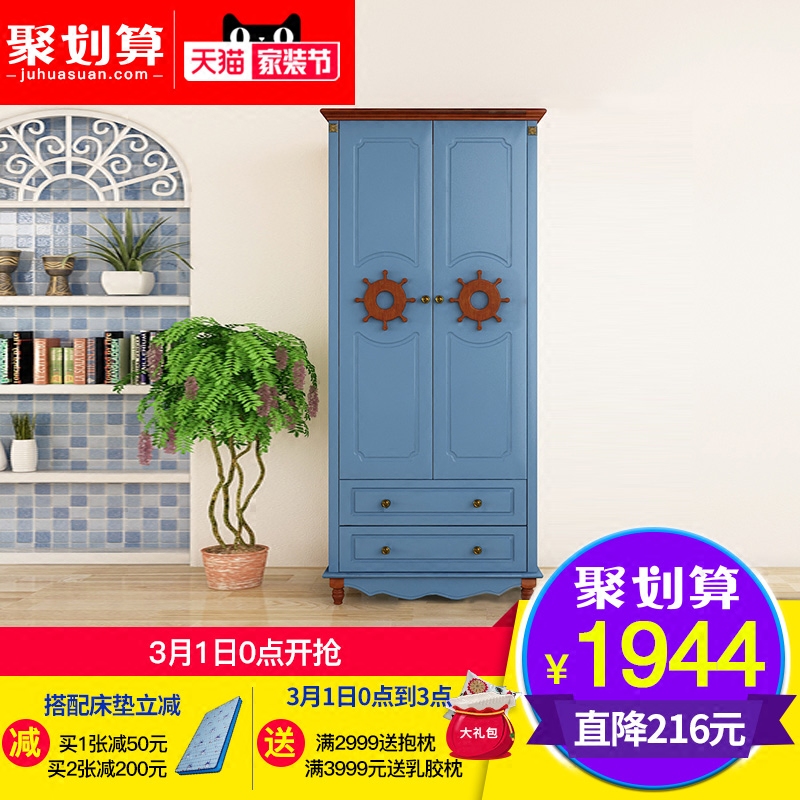 宜捷家居地中海乡村三门衣柜JG-255蓝