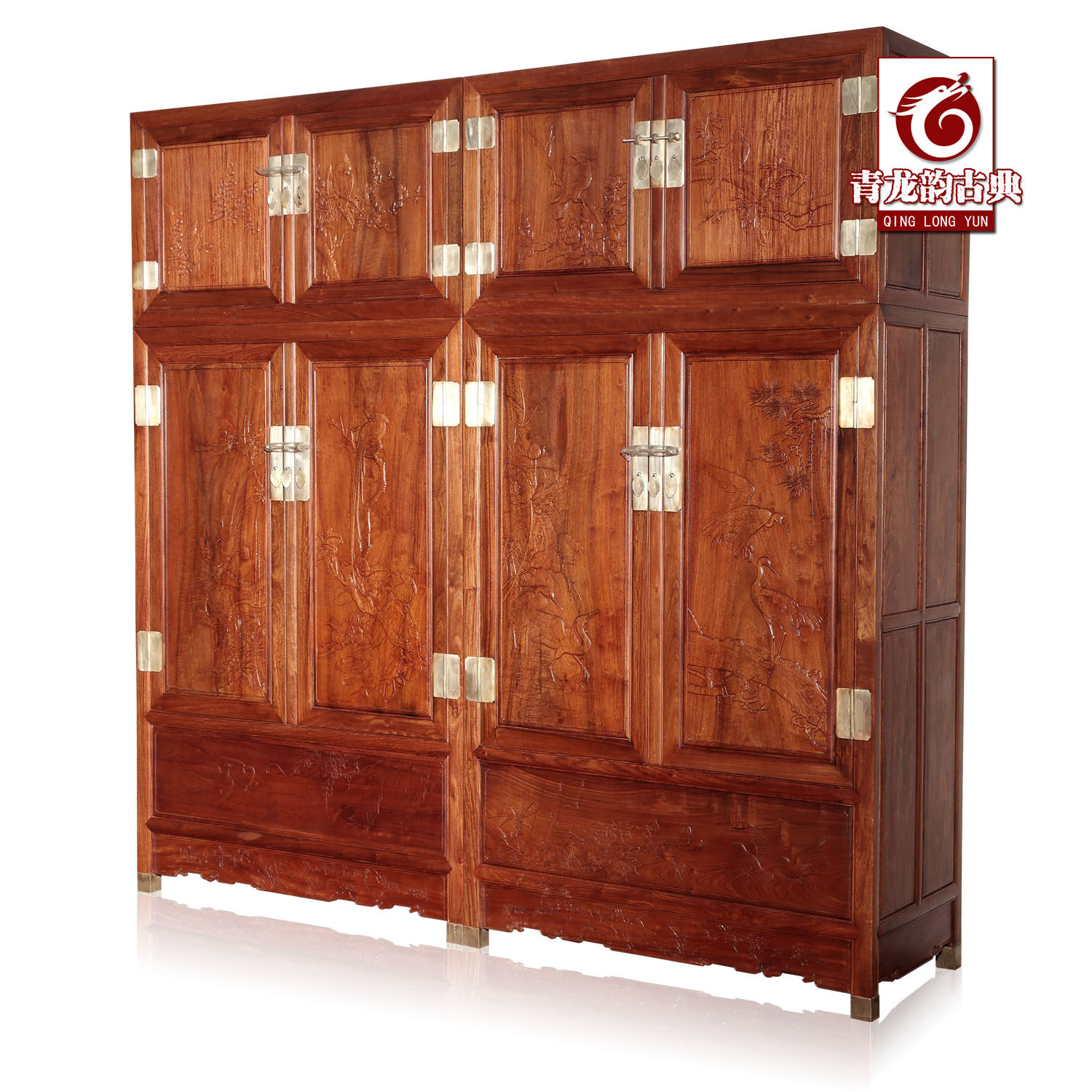青龙韵红木家具缅甸花梨木古典大衣柜mhdxg036