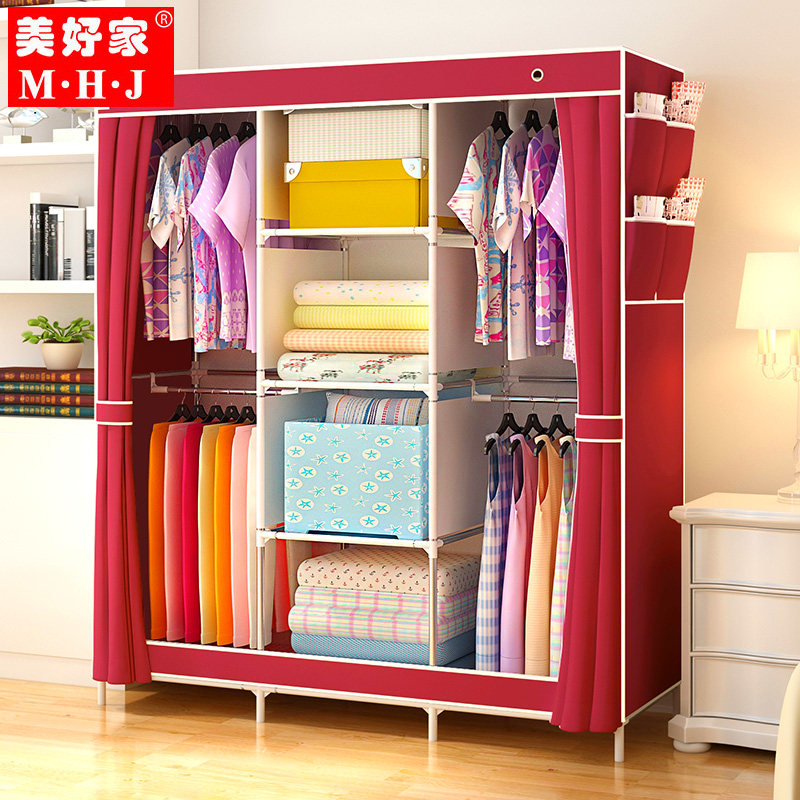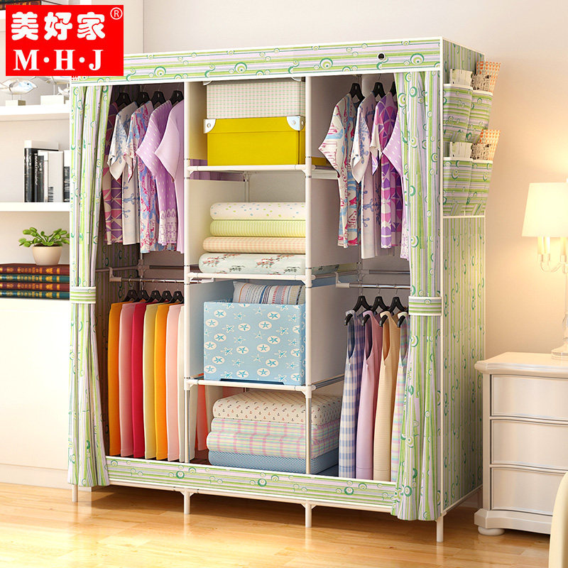 美好家简易衣柜布艺钢架折叠衣橱136G-1-1