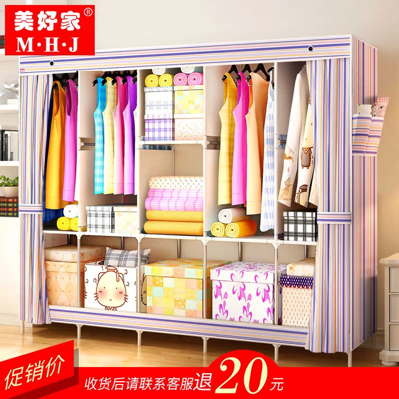 美好家双人简易布艺折叠衣柜