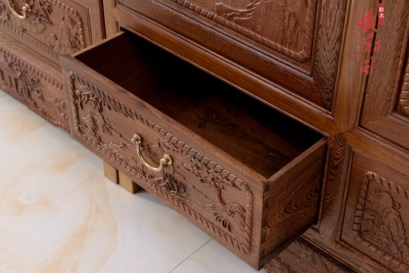 曦轩阁红木山水精雕顶箱柜