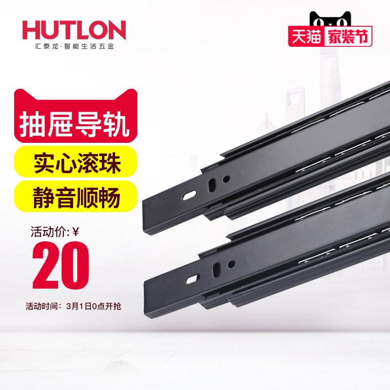 汇泰龙抽屉三节实心滑轨HKF-5615