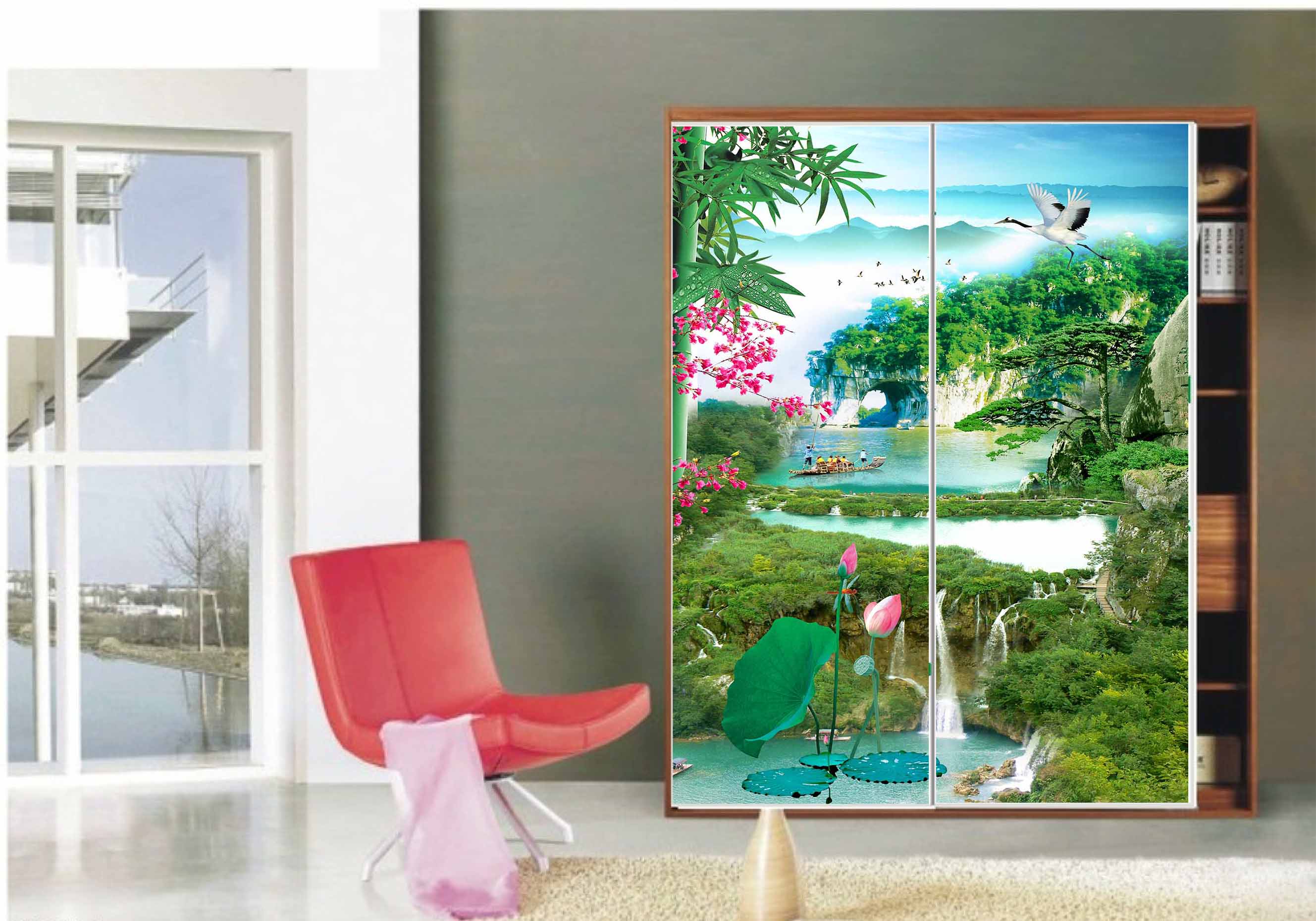 MS玻璃山水画移门贴纸SHE-XJ-282H