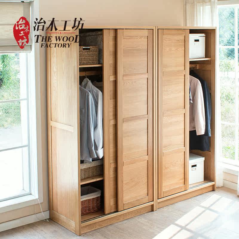 治木工坊纯实木1米推拉门衣柜YG13