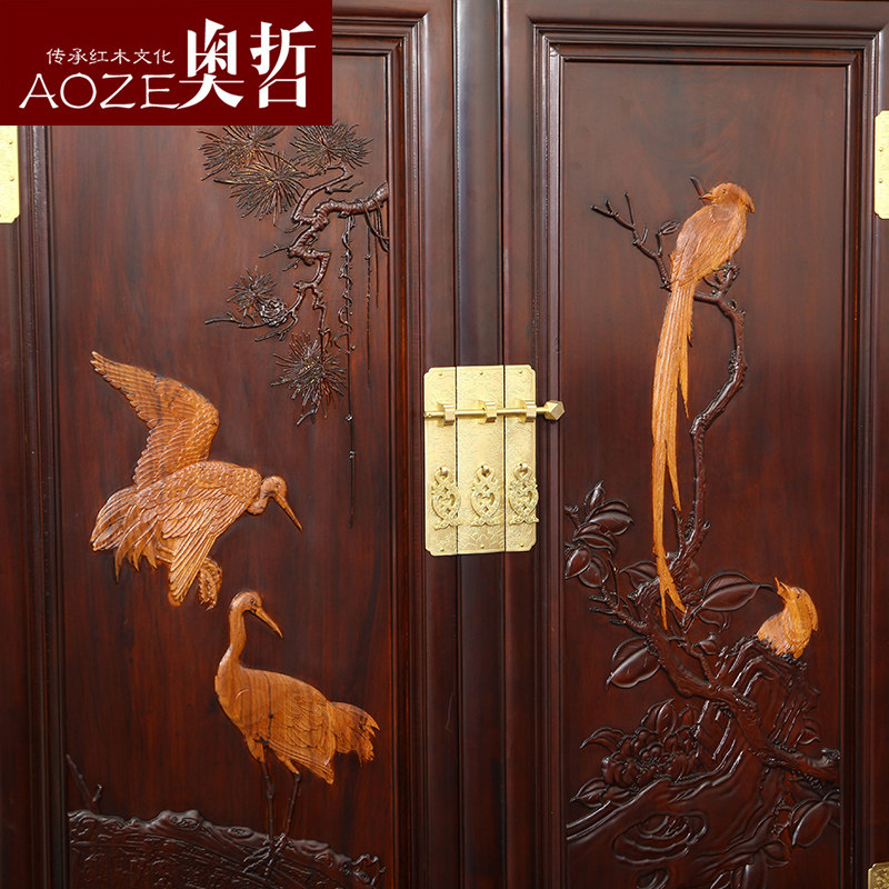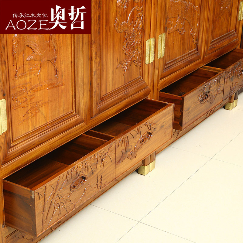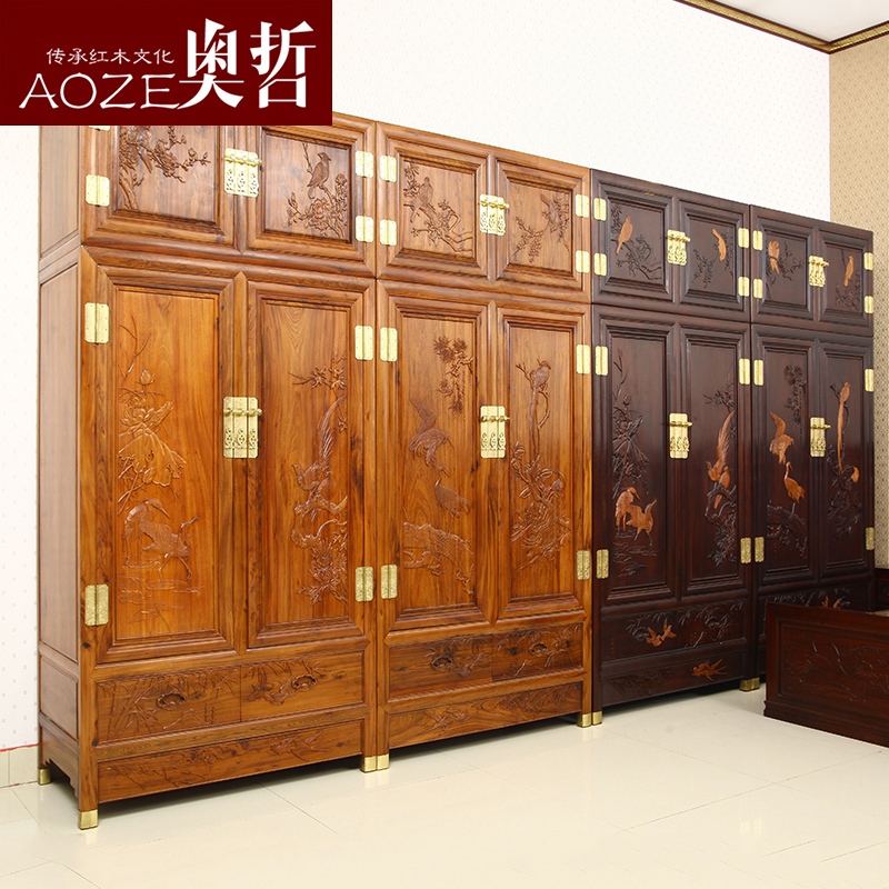 奥哲古典红木花鸟顶箱大衣柜ag37
