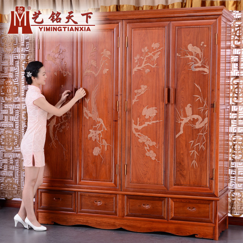艺铭天下明清缅甸花梨木雕花顶箱柜G-6301