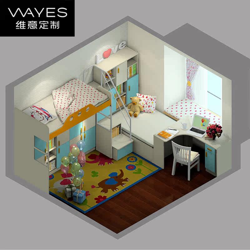 维意定制儿童房飘窗衣柜