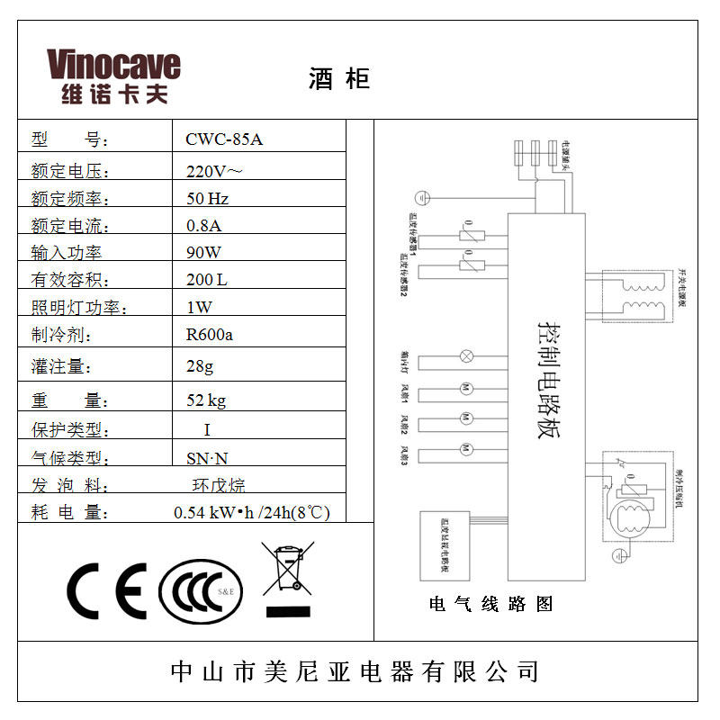 维诺卡夫压缩机恒温酒柜CWC-85A
