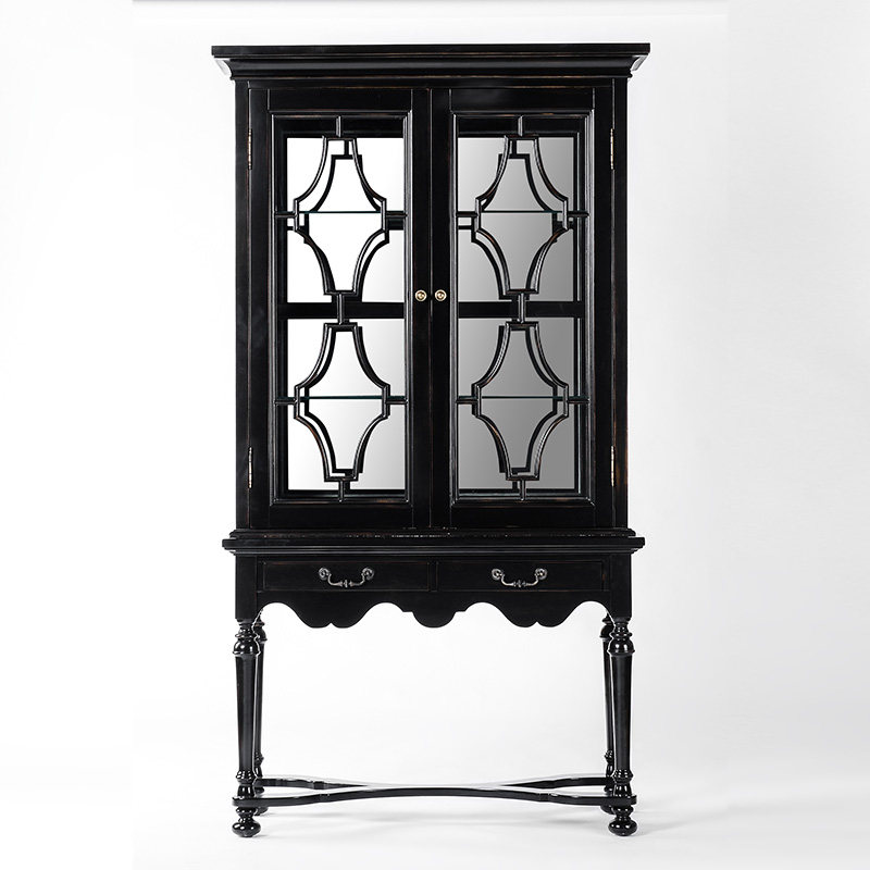 奇居良品手工雕花黑色酒柜JJ619