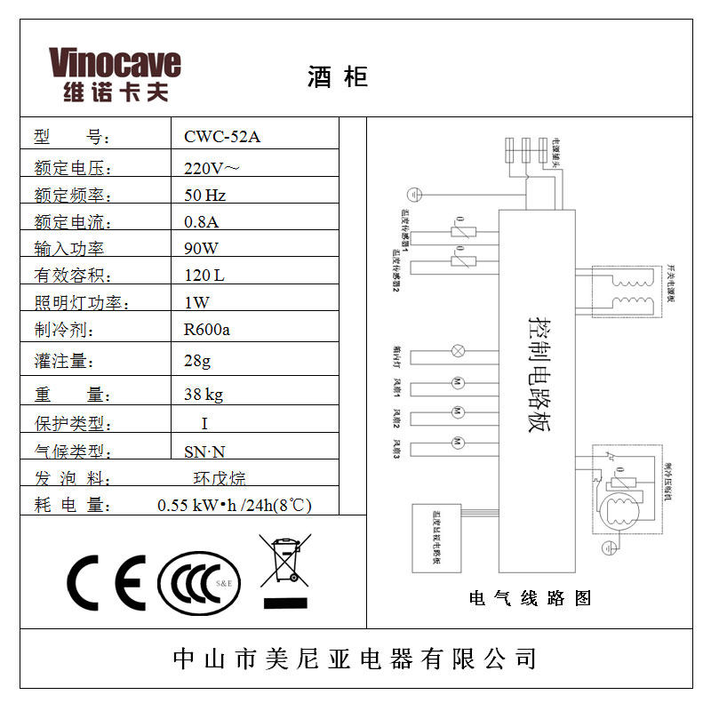 维诺卡夫红酒柜压缩机恒温酒柜CWC-52A