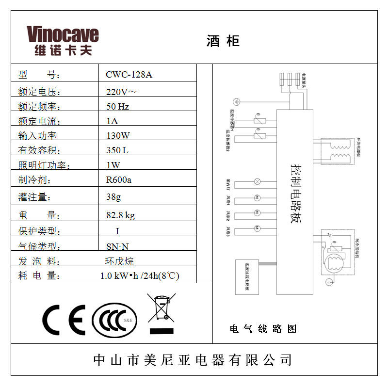 维诺卡夫红酒柜恒温酒柜CWC-128A