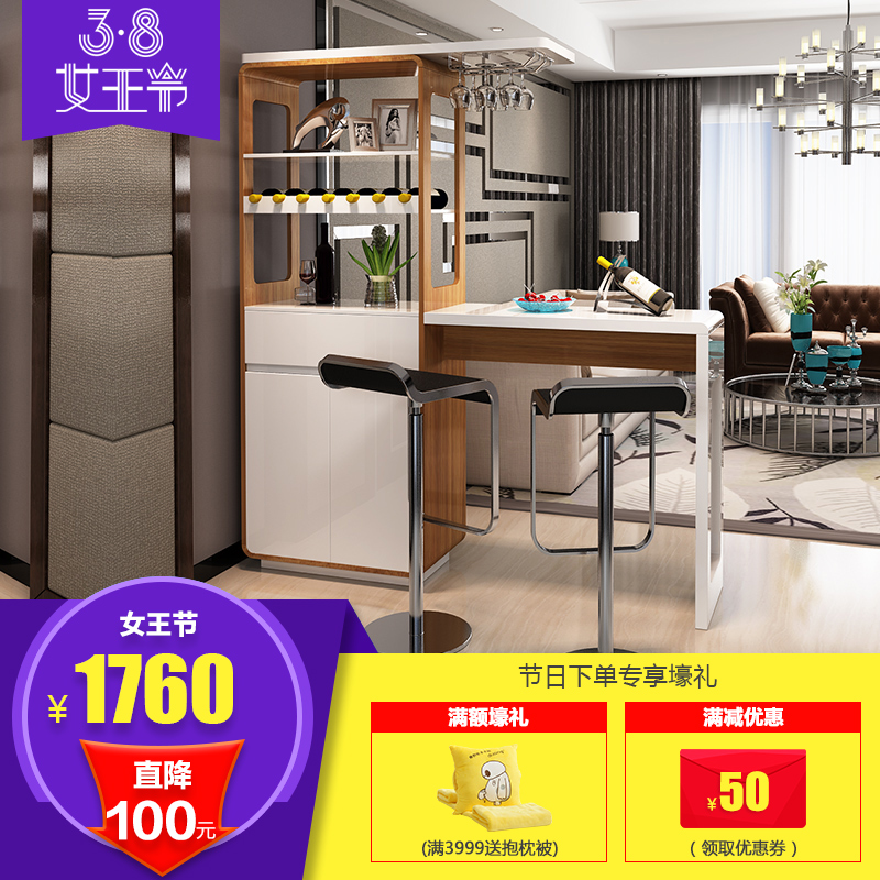 熙度现代简约烤漆吧台家用隔断酒柜BT888