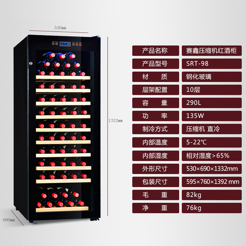 赛鑫家用红酒恒温柜压缩机葡萄酒柜SRT-98