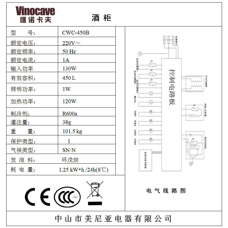 维诺卡夫压缩机红酒柜恒温酒柜CWC-450B