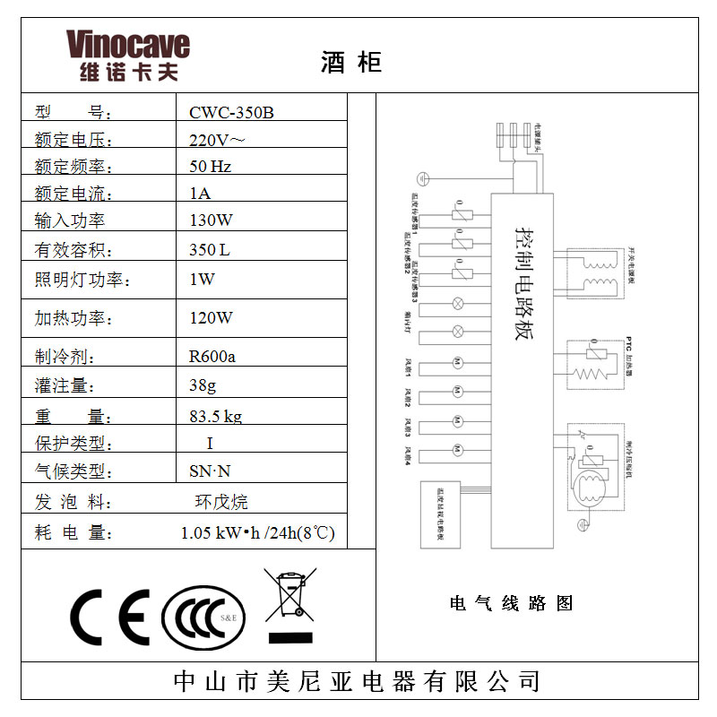 维诺卡夫压缩机恒温恒湿红酒柜CWC-350B