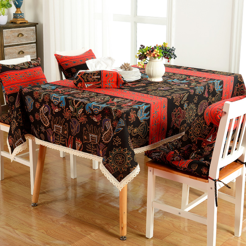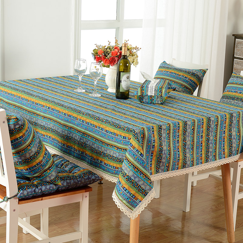 蓝松鼠布艺长方形棉麻餐桌布15103012