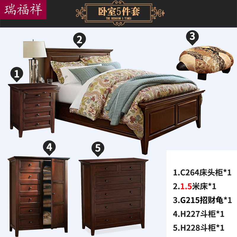 瑞福祥款美式实木床+床头柜27911