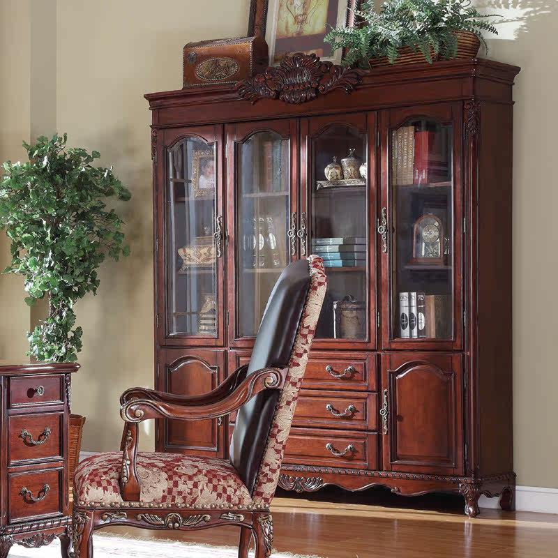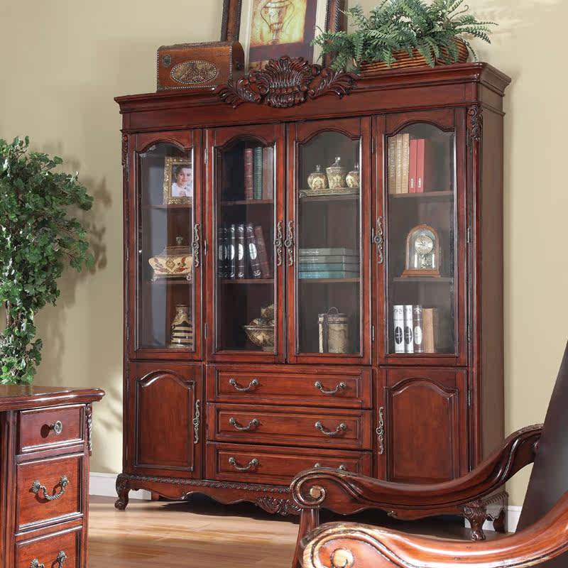 信益轩美式四门雕花展示柜SG-048