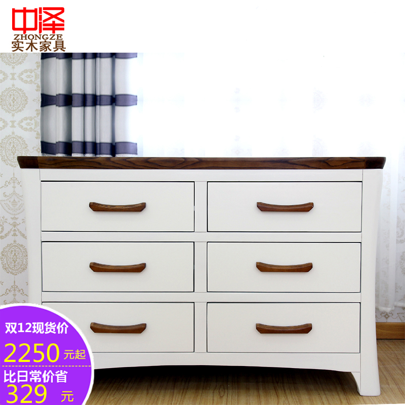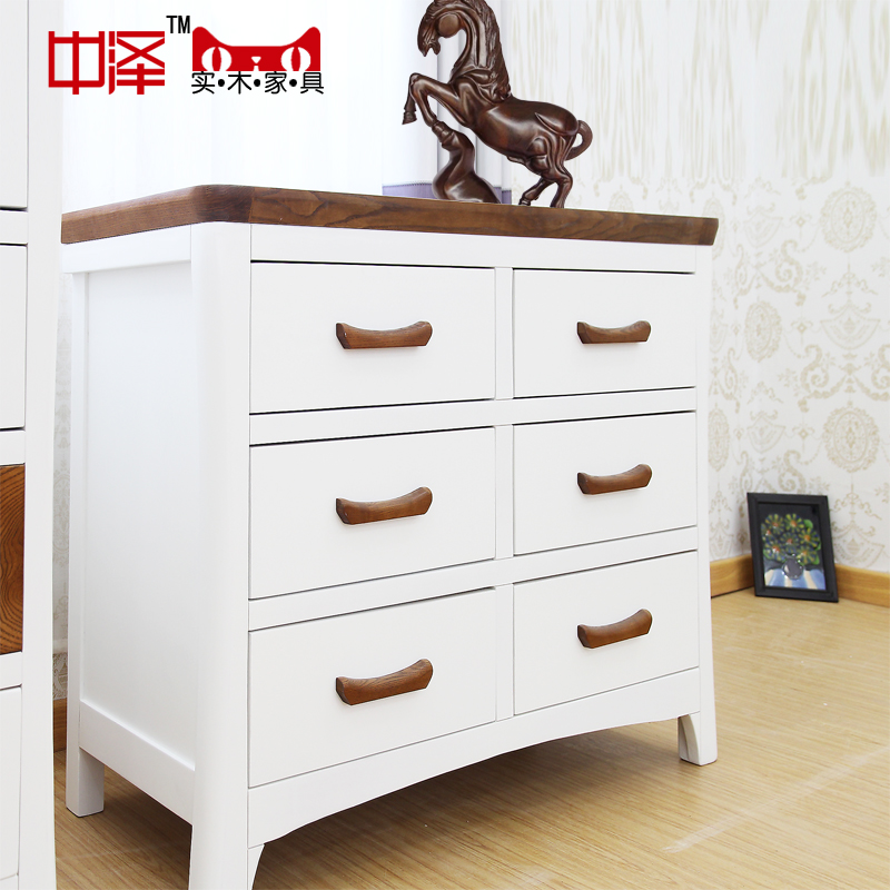 中泽地中海实木白色储物柜