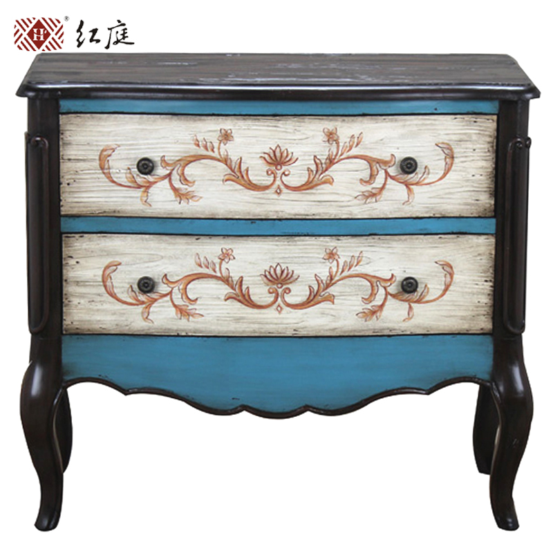 红庭美式实木蓝色彩绘抽屉柜 F0852-01687