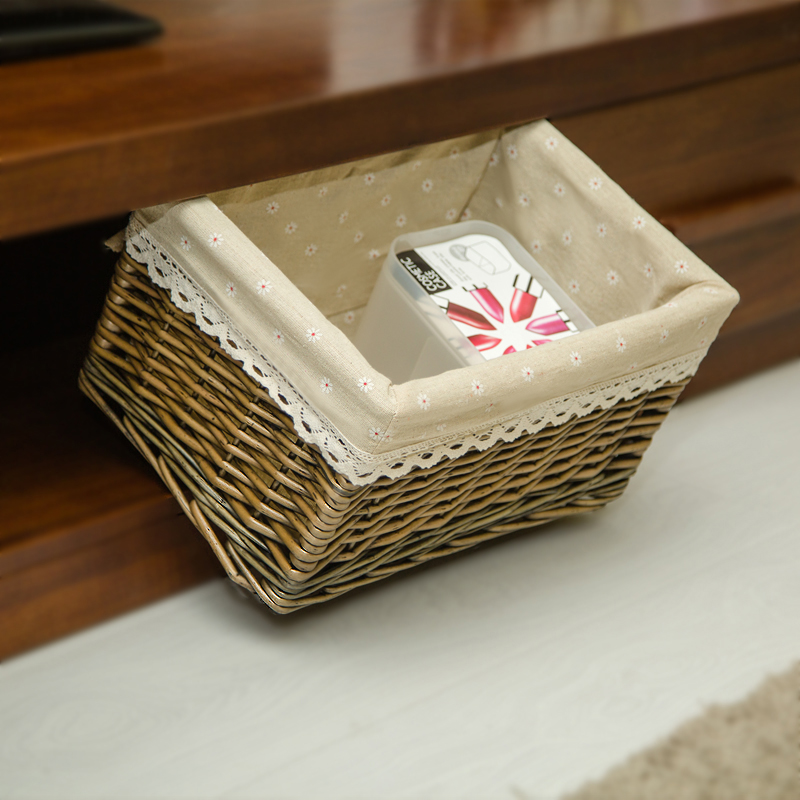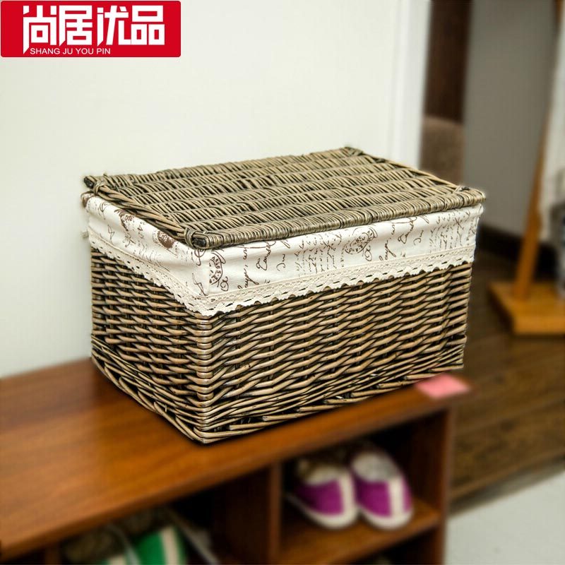 尚居优品筐藤编带盖柳编篮子整理箱SJYP-XP886