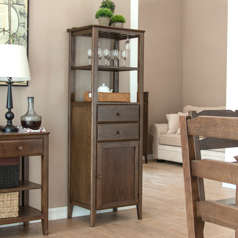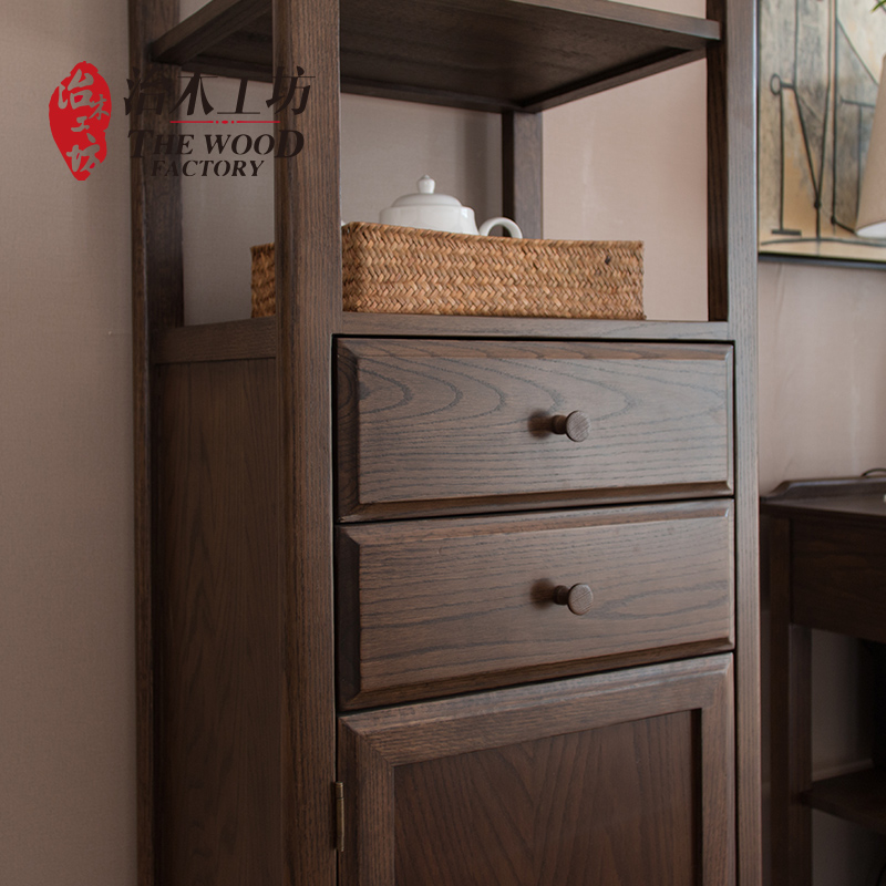 治木工坊纯实木美式黑胡桃色角柜 B-GTG02