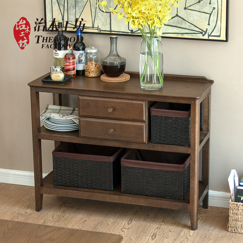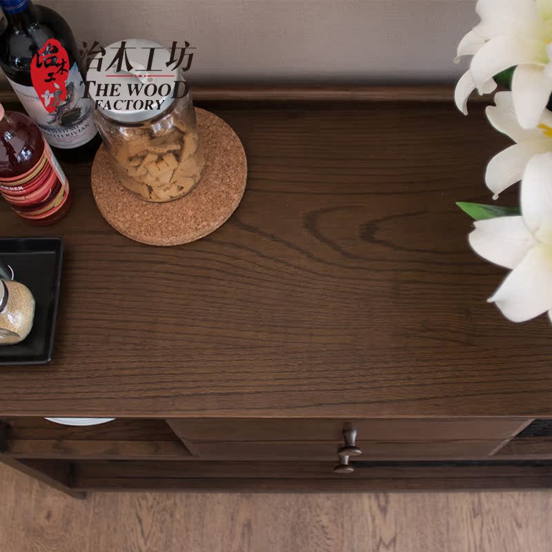 治木工坊纯实木美式胡桃色地柜 B-TZ03