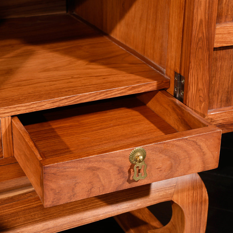 唯克美家刺猬紫檀红木带抽屉角柜 8855