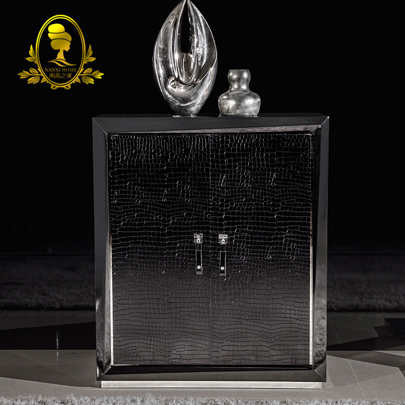南茜之家后现代黑色钢琴烤漆鞋柜D002
