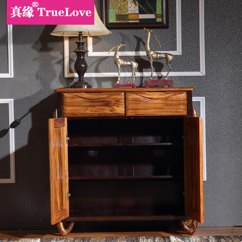 真缘乌金木家具大容量超薄实木鞋柜wj12