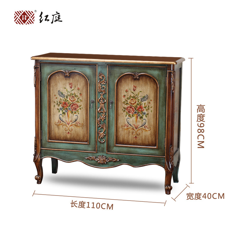 红庭美式实木雕花彩绘描金装饰柜 F1340-410210