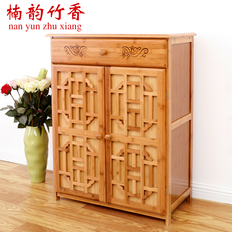楠韵竹香简约对开门实木置物架nyzx-004136