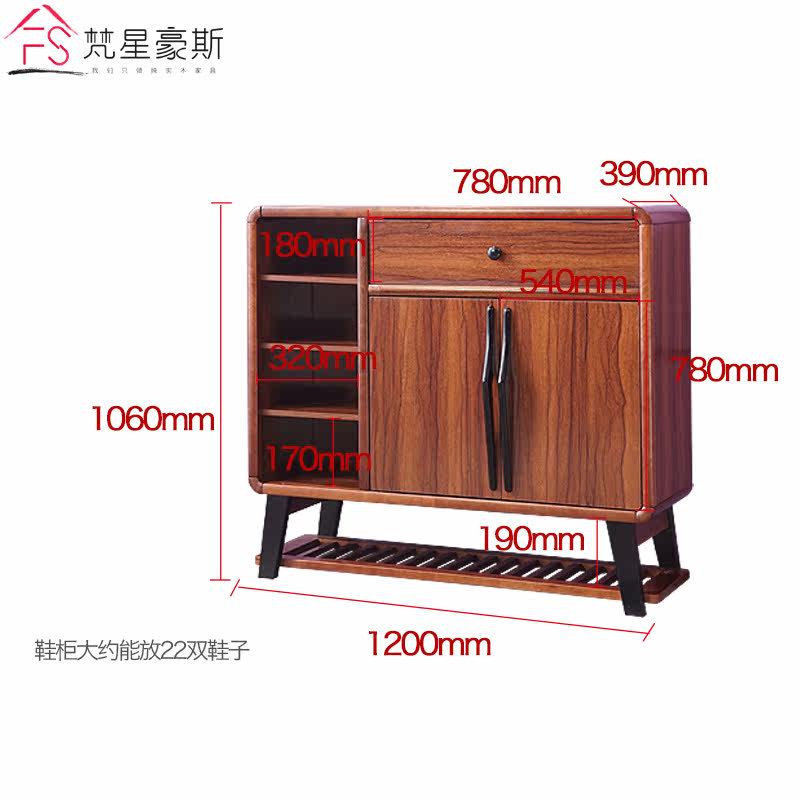 梵星豪斯实木中式三门鞋柜PSP1XA